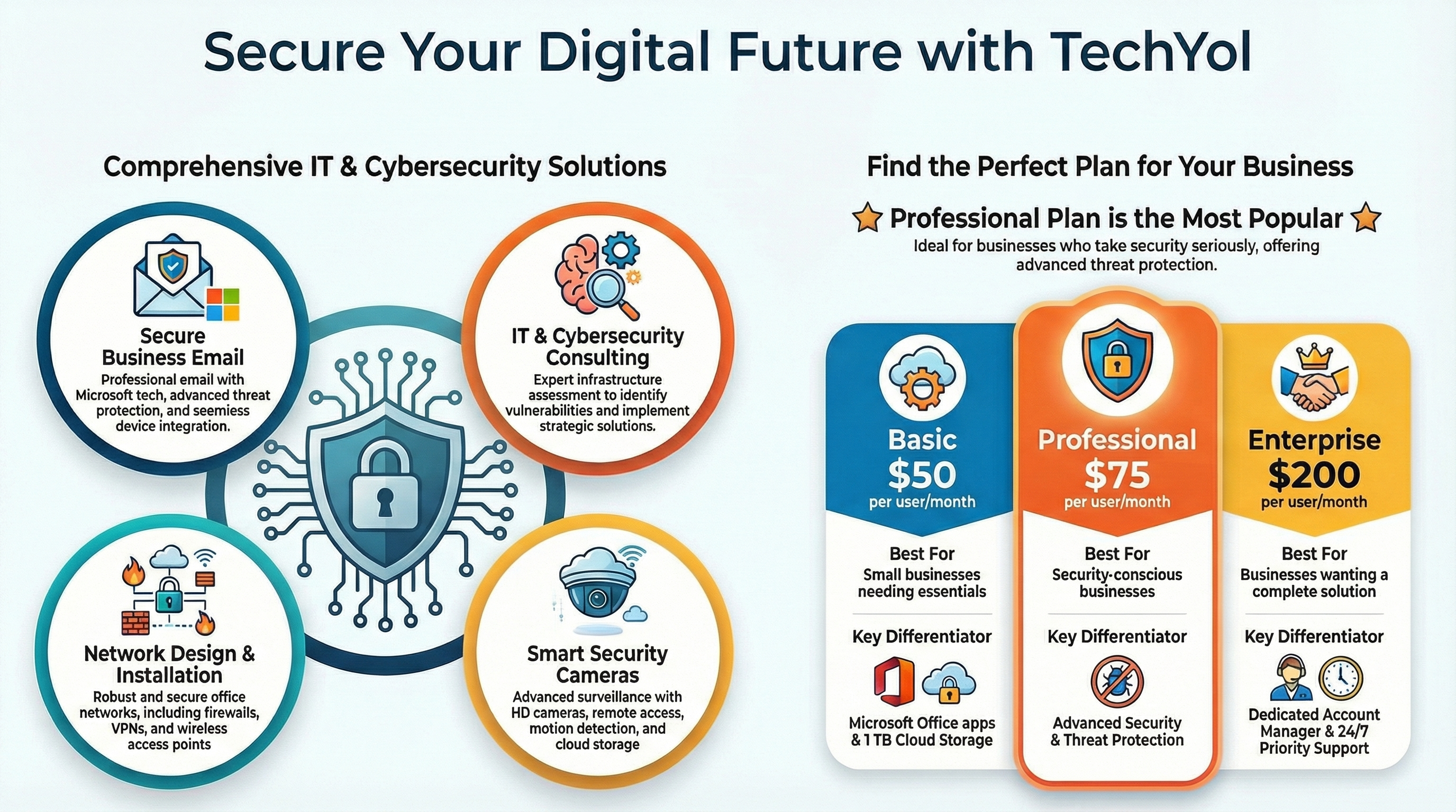 At Techyol, we deliver enterprise-grade technology solutions at a fraction of the cost most companies expect. Our mission is to make advanced IT deployments accessible without compromising on quality, security, or performance. From cloud migration and cybersecurity to infrastructure optimization, we provide tailored services that fit your budget and business goals. With a customer-first approach and proven expertise, Techyol ensures seamless experiences, measurable results, and long-term value—so you can achieve more for less.